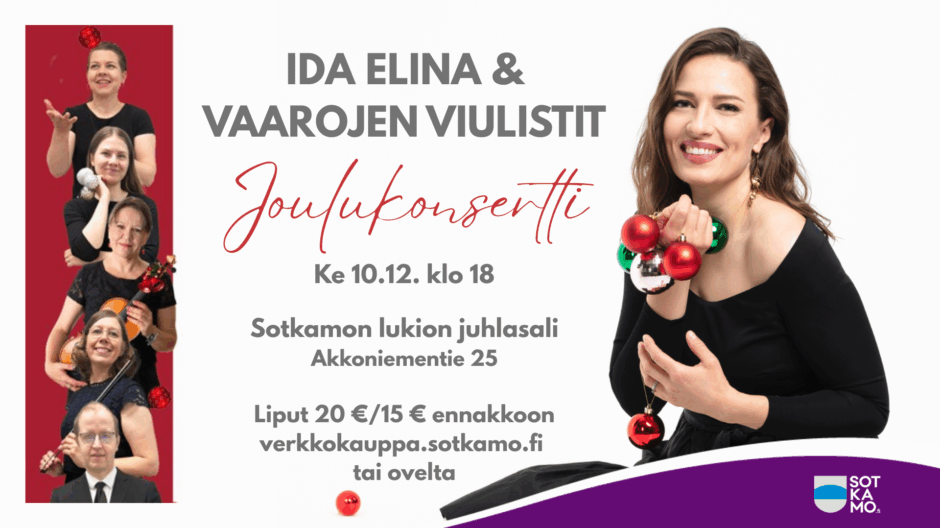 Ida Elinan ja Vaarojen viulistien joulukonsertti 10.12. vie joulun tunnelmaan