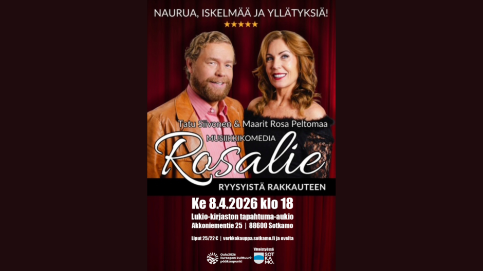 ROSALIE-musiikkikomedia 8.4. klo 18 lukio-kirjaston tapahtuma-aukiolla
