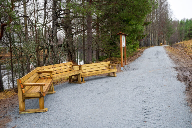 Reitin varrella on yhdeksän taukopaikkaa kolmella eritasoisella penkkiryhmällä.