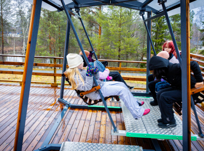 Metsäreitin varrella on esteetön maisematasanne, jossa voi levähtää ja nauttia näkymistä. Tasanteella on esteetön keinu sekä kolmitasopenkkejä korkeuksilla 300, 450 ja 550 millimetriä. Penkkien päädyissä on käsituet, jotka helpottavat istumista ja nousemista.